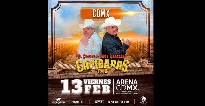 Así que prepárense para asistir al “CAPIBARAS TOUR” con Chuy Lizárraga y El Coyote el viernes 13 de febrero del 2026 en la Arena CDMX.