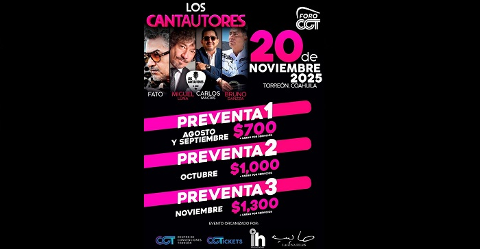 El público ya puede aprovechar la segunda preventa, aseguren sus boletos antes de que se agoten en la página oficial https://cctickets.tickesoft.com/eventos/los-cantautores-2025