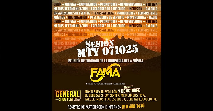 El primer congreso denominado Fusión Artística Musical y Asociados, FAMA, se realizó el día de ayer en la Sultana del Norte en donde se dieron cita, artistas del regional mexicano, empresarios, promotores, managers, compositores y medios de comunicación, entre otros para trabajar en conjunto en una sinergia para desarrollar juntos actividades para impulsar y beneficiar más a la industria musical, sobre todo en el norte.