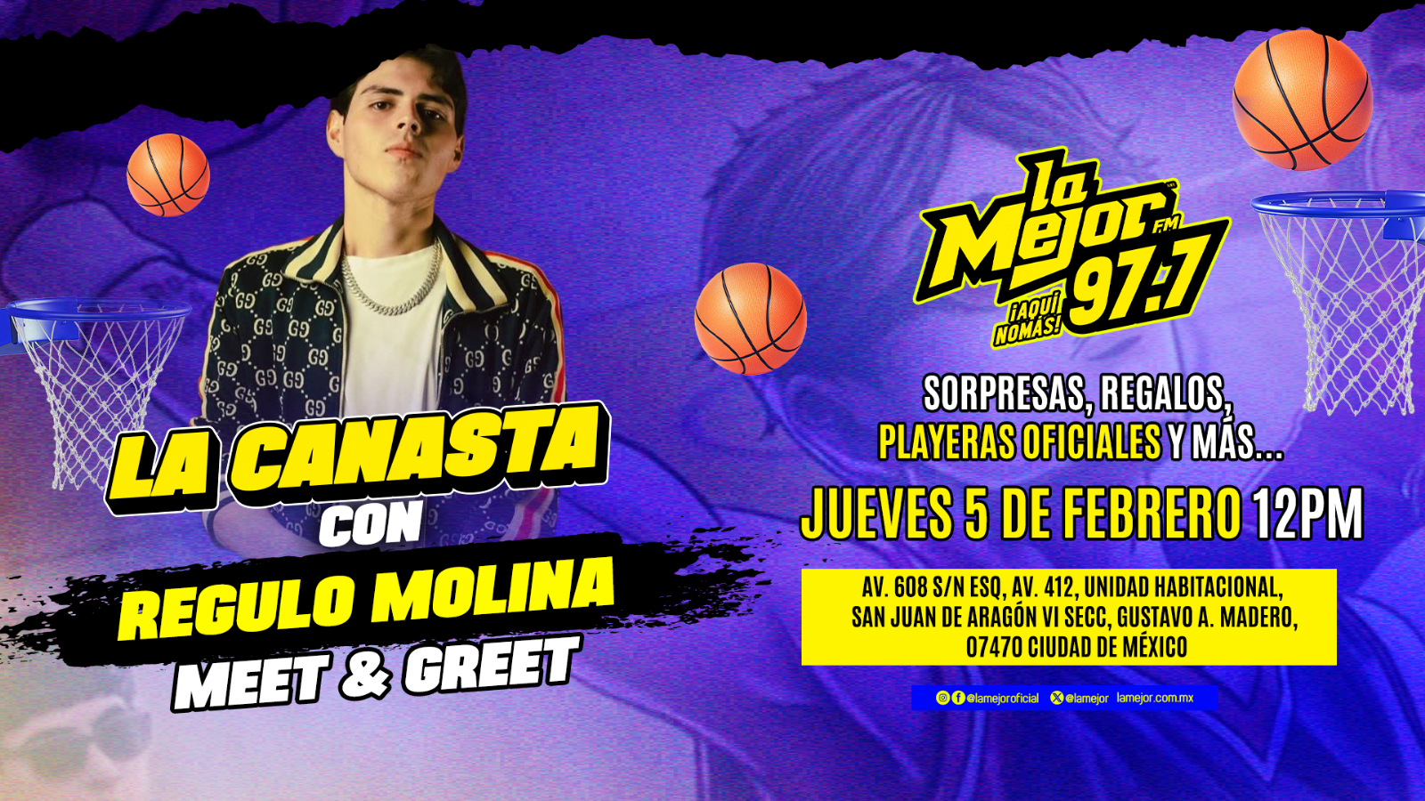 Además de participar por increíbles obsequios, tendrás la oportunidad de convivir con Régulo Molina en un exclusivo meet & greet. No faltes y mantente pendiente de toda la programación de La Mejor.