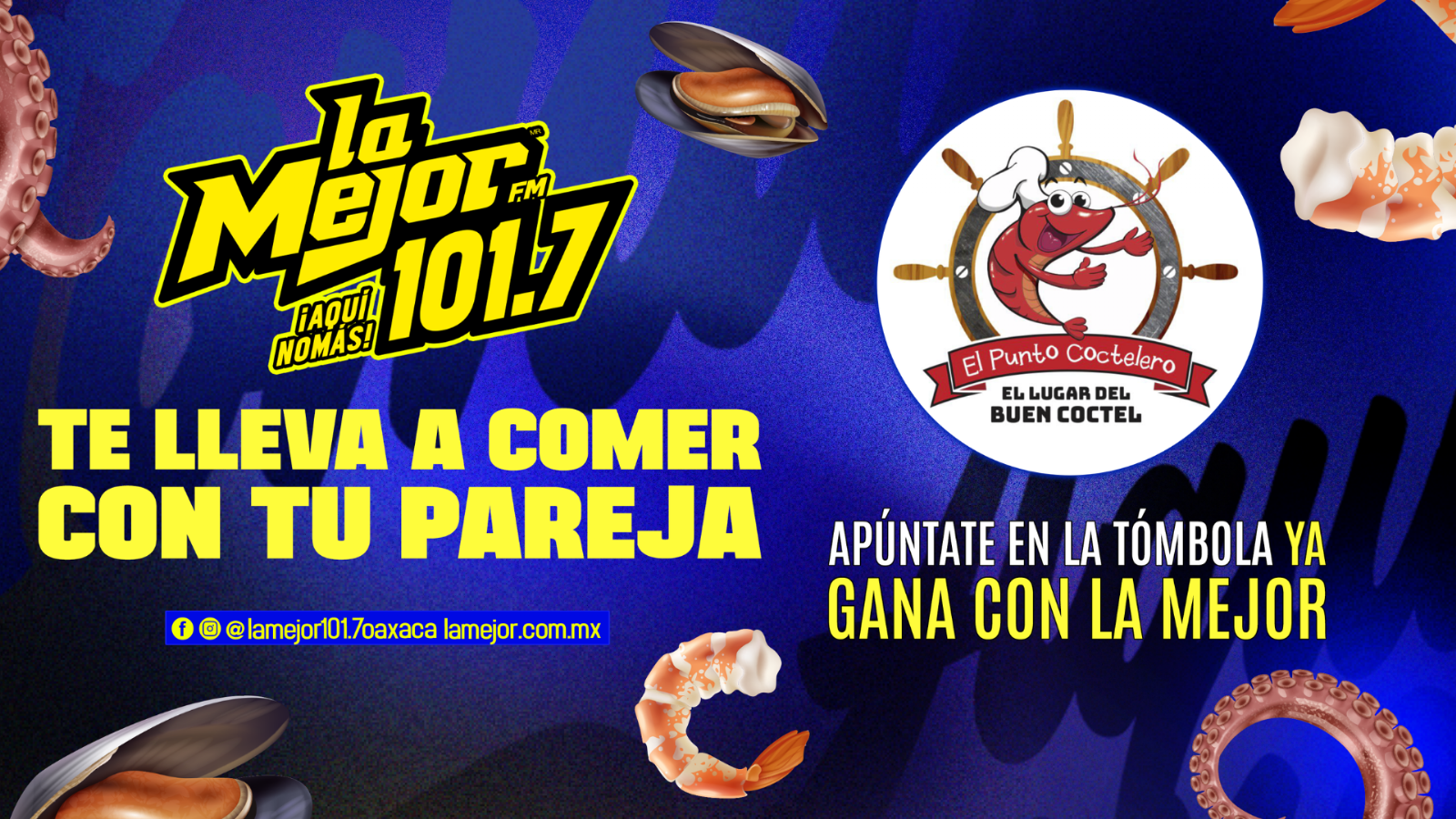 ESCUCHA LA DINÁMICA EN LA MEJOR 101.7 FM La Mejor 101.7 FM te lleva a comer con tu pareja Escucha nuestra dinámica en nuestros turnos de La Mejor 101.7 FM PROMOCIONES