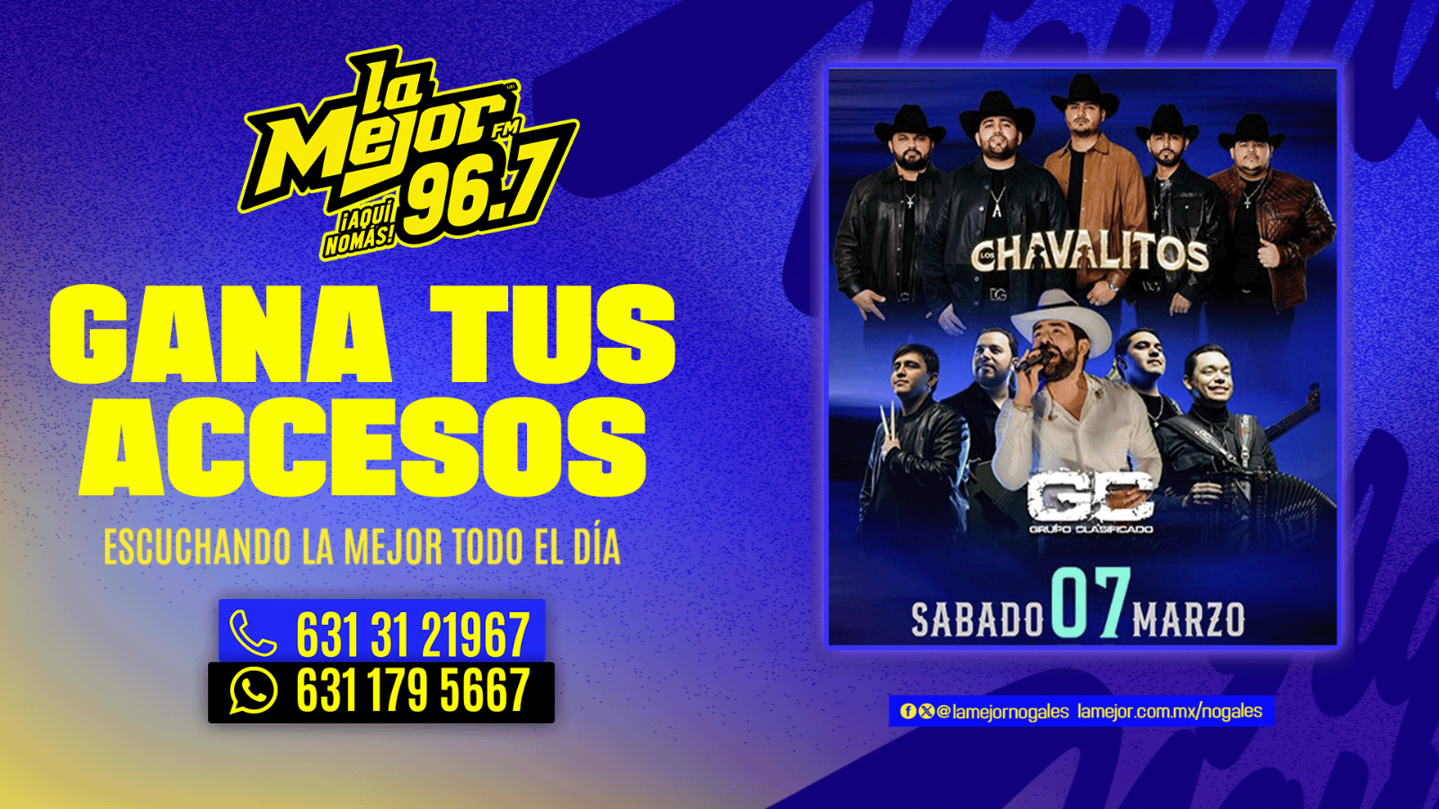 ESCUCHA LA MEJOR 96.7 TODO EL DIA Y GANA EL ACCESO CON TU LOCUTOR FAVORITO
