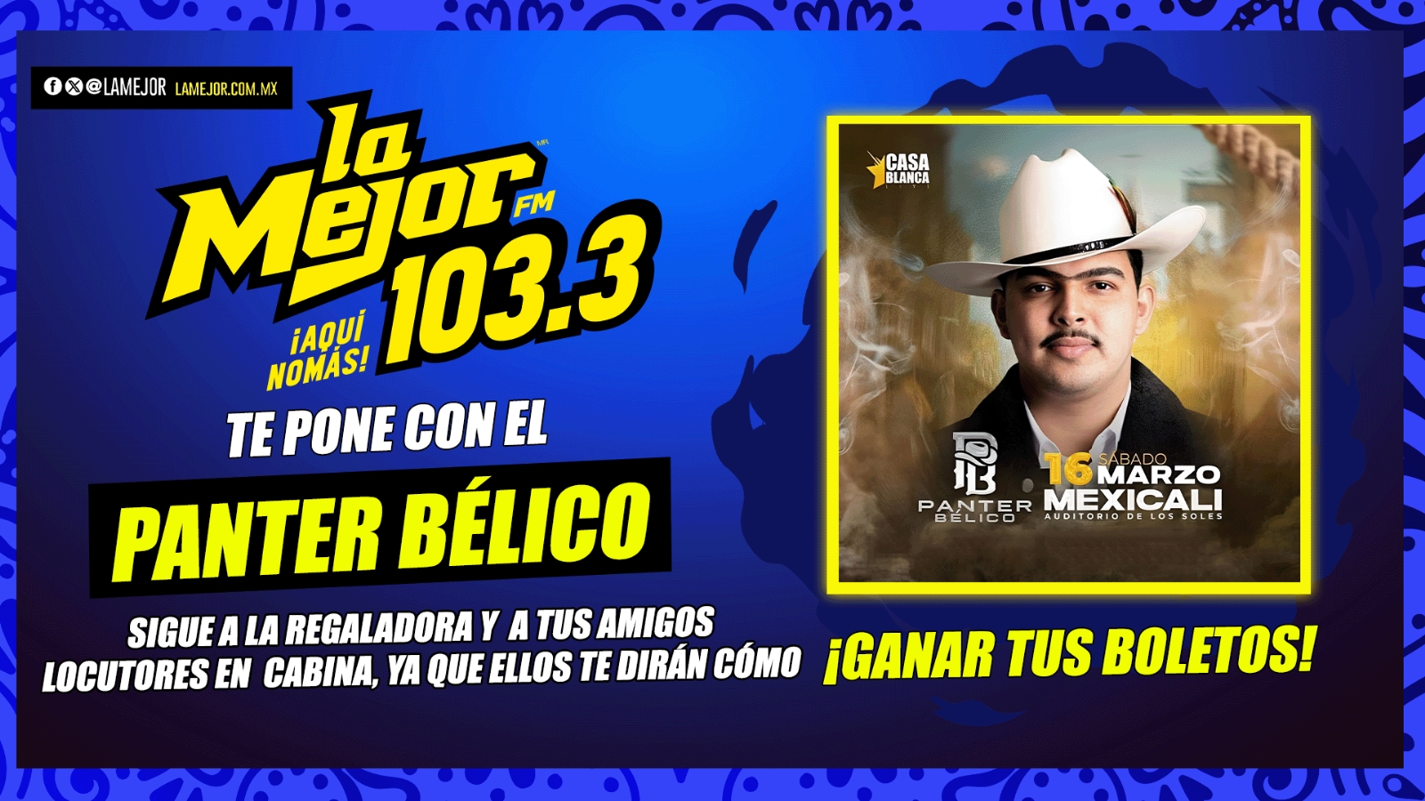 La Mejor FM 103.3 te pone en el concierto del Panter Bélico, sigue a la regaladora y a tus amigos locutores para ganar