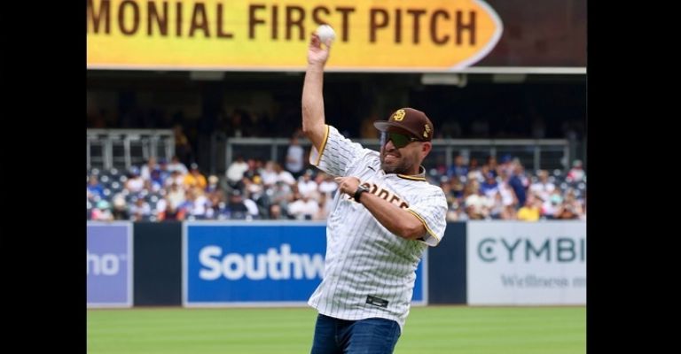 Este acto simbólico se llevó a cabo en un ambiente en el que sobresalió la unión y compañerismo.El productor, director y fundador de la Banda MS, fue el encargado de lanzar la primera bola la tarde, el día de ayer, durante el partido celebrado en el Petco Park, donde los Padres de San Diego se enfrentaron a los Dodgers de Los Ángeles.