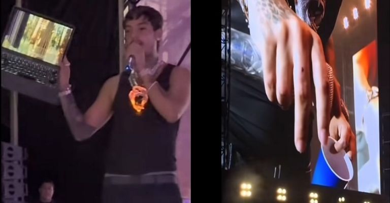 El cantante de corridos tumbados se presentó en el cierre del Baja Beach Fest en las playas de Rosarito y fue ahí donde Natanael Cano explotó en contra del DJ llegándolo a golpear en pleno escenario frente al público y destruyendo su equipo de trabajo.