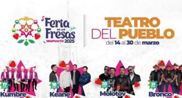 La inauguración de la Feria de las Fresas será el viernes 14 de marzo y contará con la presentación gratuita de Aleks Syntek en el Teatro del Pueblo. Además, el 18 de marzo se presentará la reconocida banda británica Keane.