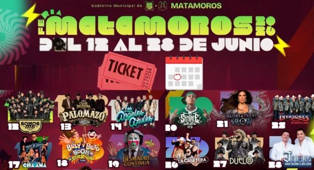 Cartelera Feria Matamoros 2026. Créditos: Facebook Gobierno Municipal de Matamoros