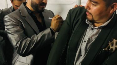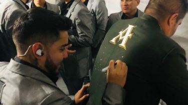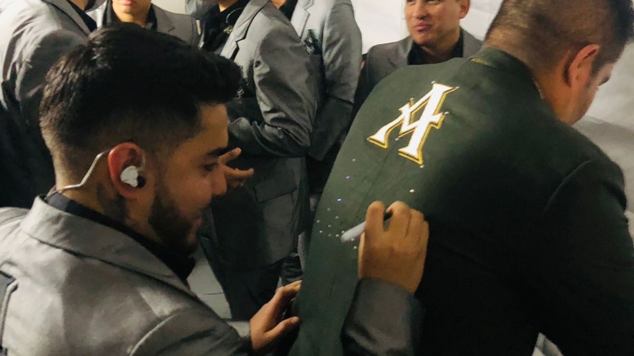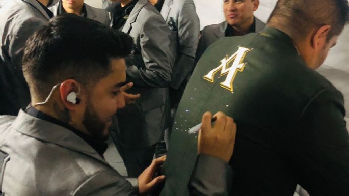 Los trajes fueron autografiados por la banda, seguido de ahí se llevo acabo la foto grupal con los ganadores y los locutores.
