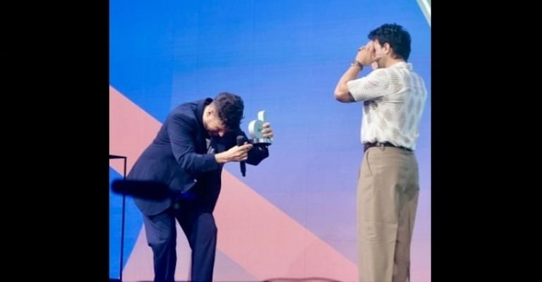 El premio le fue entregado por el reconocido cantautor español Pablo López.
