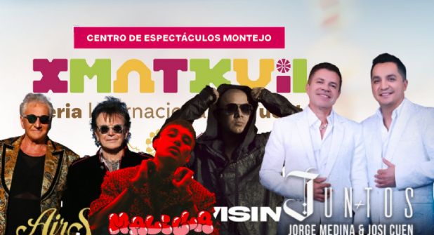Cartelera de artistas que darán concierto en el Centro de Espectáculos Montejo de la Feria Xmatkuil Yucatán 2025