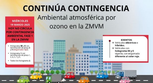 La Comisión Ambiental de la Megalópolis (CAMe) informó que la Contingencia Ambiental Atmosférica por ozono en el Valle de México se mantiene debido a las condiciones meteorológicas adversas que impiden la dispersión de contaminantes.