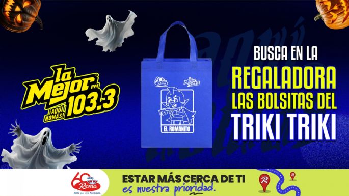 LLEVATE TU BOLSITA PARA RECOLECTAR DULCES QUE ADEMAS ESTA REPLETA DE GOLOSINAS DELICIOSAMENTE ESPELUZNANTES, LAS BOLSITAS DE TRIKI TRIKI DE LA MEJOR Y FARMACIAS ROMA, NO ESPERES MAS Y VE POR LA TUYA, LLEGA A LA UBICACION DE LA REGALADORA POR LAS DIVERSAS SUCURSALES DE FARMACIAS ROMA.