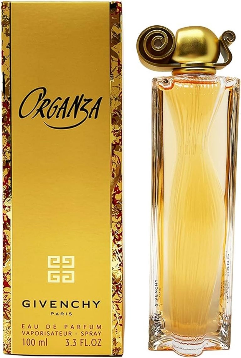 Organza de Givenchy: Inspirado en el misterio y la delicadeza, este perfume combina notas florales de bergamota, flor de naranjo africano y gardenia, con toques especiados de nuez moscada y notas verdes.