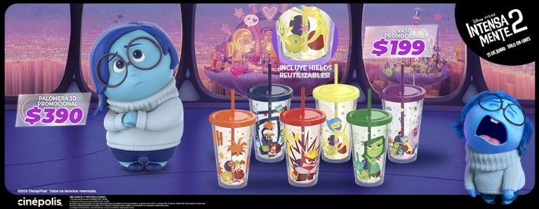 Además, con este grandioso estreno, los productos promocionales no podrían faltar, de hecho, ya antes te hablamos sobre la palomera de Tristeza. Por lo que ahora aprovecharemos para contarte todo sobre los vasos coleccionables que ofrece Cinépolis.